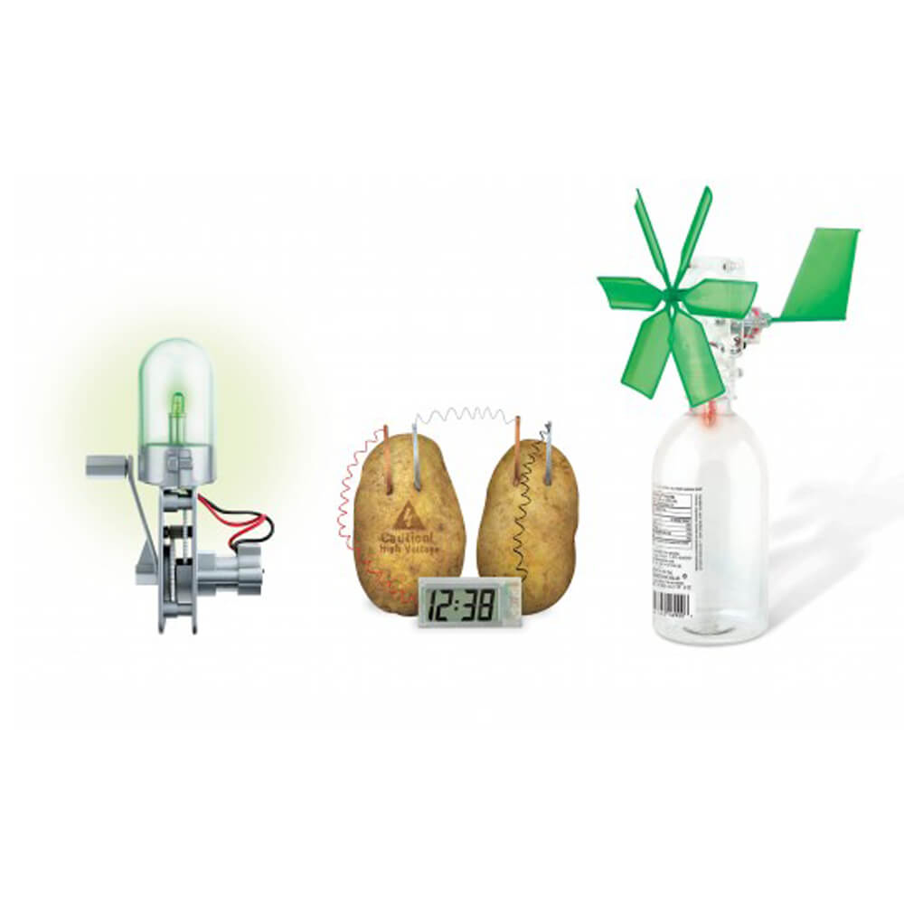 - Rüzgarla çalışan bir jeneratör, kolu çevirerek çalışan bir fener ve patates pilleriyle çalışan bir saat yapın.