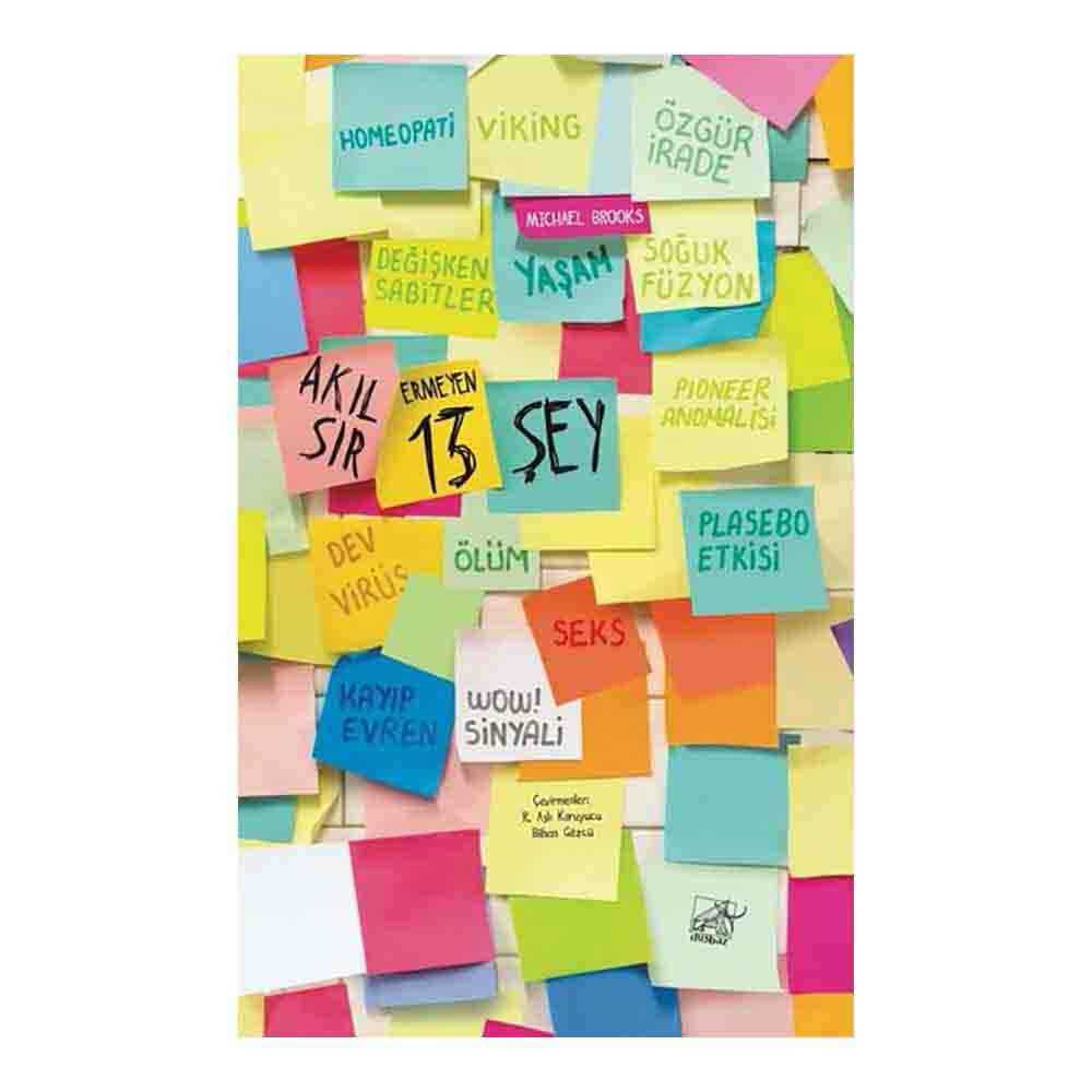 Akıl Sır Ermeyen 13 Şey, yalnızca bilimle ve bilim tarihiyle ilgilenenler için değil, bilimin metafiziğiyle ilgilenenler için de önemli bir başucu kitabı.“Önde gelen kurmaca dışı okumalardan biri.” Esquire“Hayran olunacak derecede anlaşılır ve akıllı bir yazar var karşımızda.” Evening Standard“İster yıldız tozu olduğumuza inanalım ister nükleer atık, bu kitabı elimizden bırakamayacağız.” Independent on Sunday“Okurların hep beklediği türden bir bilim kitabı bu. Bilgi veriyor, kolay okunuyor. Ayrıntılarla dolu ama bir o kadar anlaşılır.” Daily Telegraph“Bilimin öne çıkan pek çok problemi bu önemli kitapta büyük coşkuyla yankılanıyor.” Seed Magazine“Her daim başvurulacak türden bir bilim kitabı. Okuduğunuzda kendinizi daha zeki hissedeceksiniz.” William Leith“Büyüleyici… Brooks’un kalemi, Carl Sagan ile Stephen Jay Gould’u hatırlatıyor.” Anahad O’Connor“Bilimin yaşamı tanımlayamadığını, ölümün neden yaşanması gerektiğine bir cevap veremediğini, seksin neden gerekli olduğunu yanıtlayamadığını öğrendiğinizde hayretler içinde kalacaksınız.” Richard Ellis“Titizlikle araştırılmış, incelikle yazılmış bu kitap, bilimin gerçekte nasıl işlediğine dair bir pencere aralarken hararetli tartışmalara zemin hazırlıyor.” New Scientist(Tanıtım Bülteninden)ISBN : 9786257425094Proje Editörü : Michael Brooks