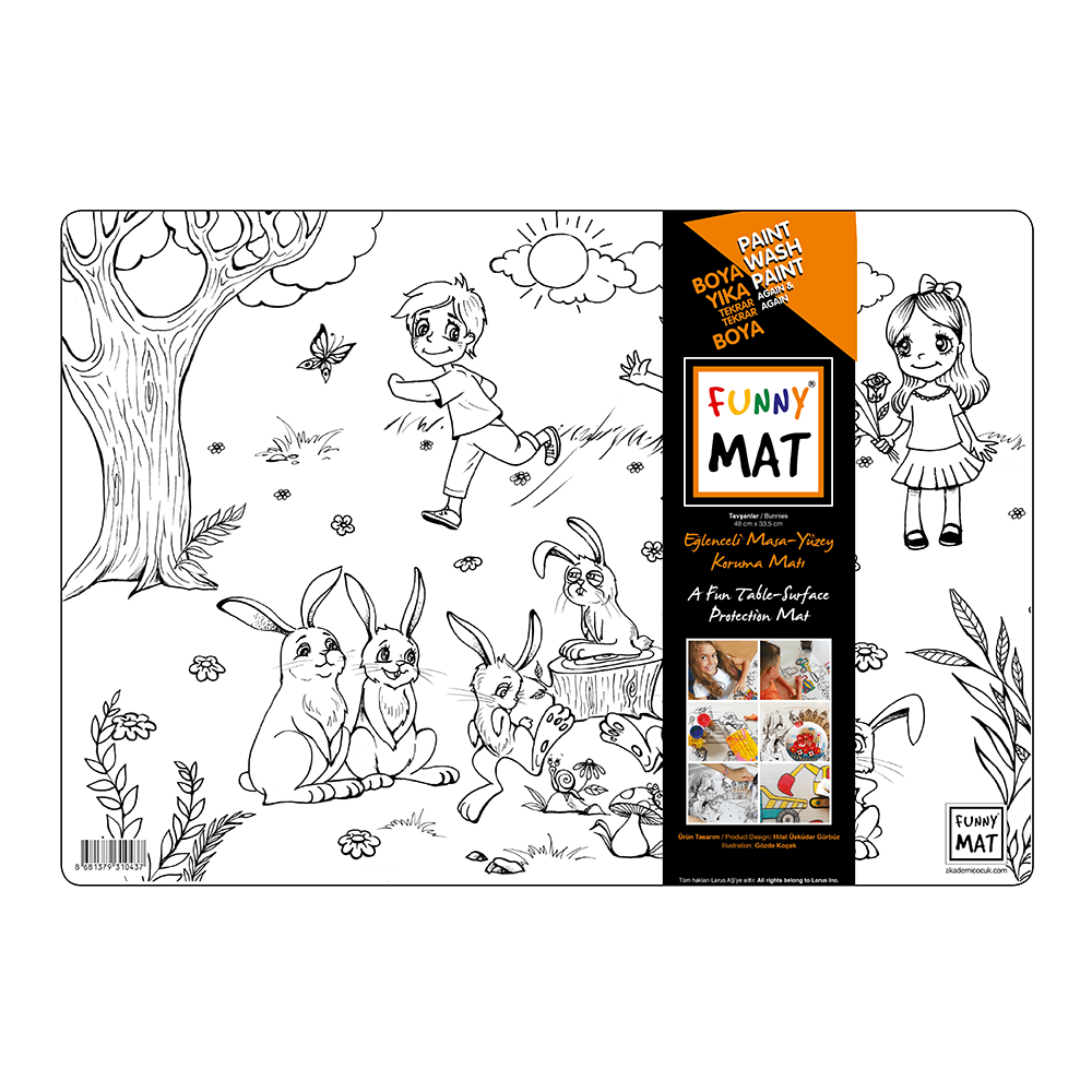 Funny Mat, her türlü aktivite için masa ve yüzey koruyucu olarak kullanılır. Üzerinde yemek yenebilir boyama yapılabilir, kil ve oyun hamuru şekkillendirilebilir, ders çalışılabilir. Funny Mat'ın kendiside aynı zamanda eğlenceli bir aktivite mataryelidir. Funny mat üzerinde desenler, keçeli kalem ve kuru boya ile istenildiği gibi boyanabilir. Funny Mat, suyun altına tutulduğunda ıslak mendille silindiğinde boyalar hemen çıkar ve defalarca farklı renklere boyamak mümkün olur.