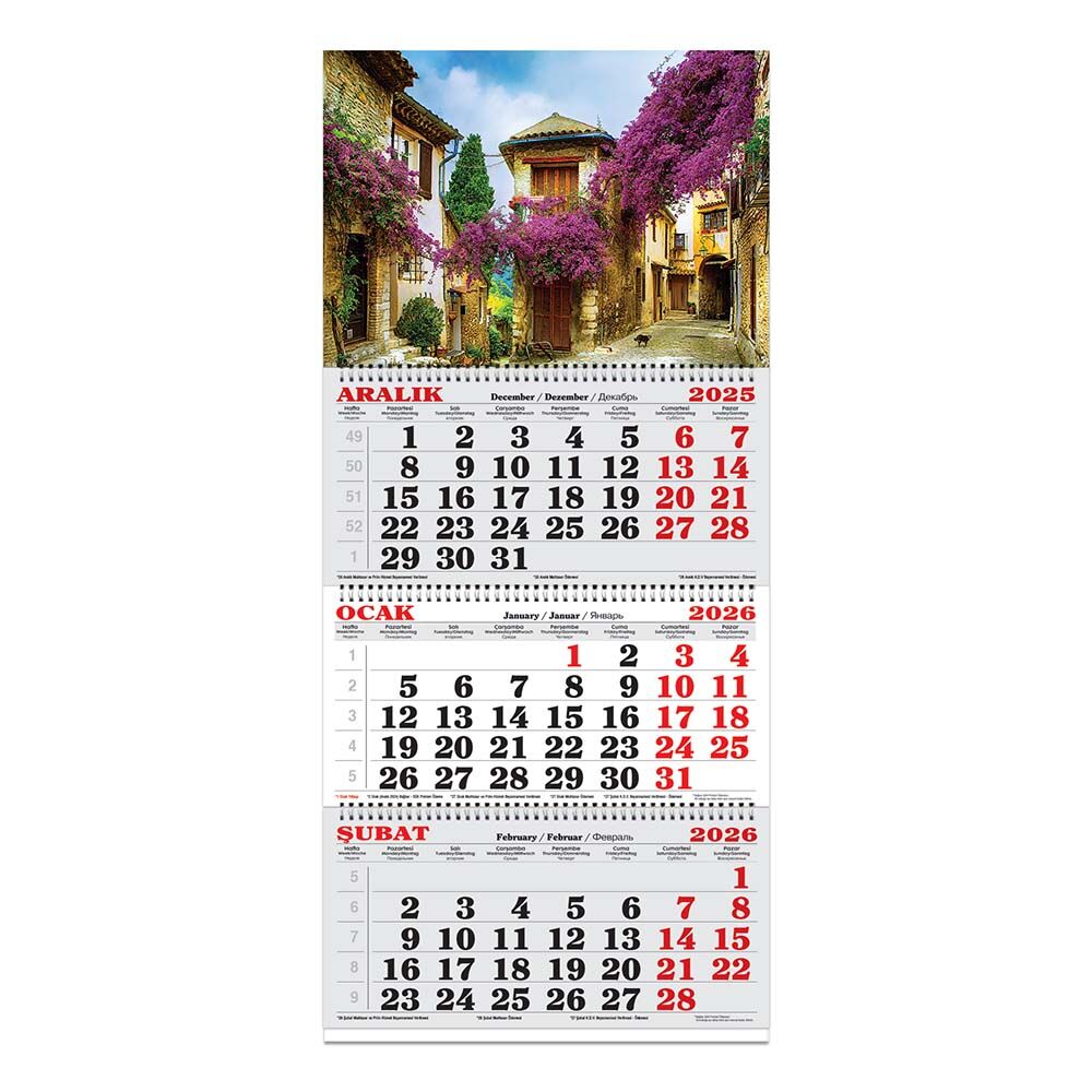 Keskin 2026 3 Aylık Spiralli Jumbo Denizci Takvim Begonvil Sokağı