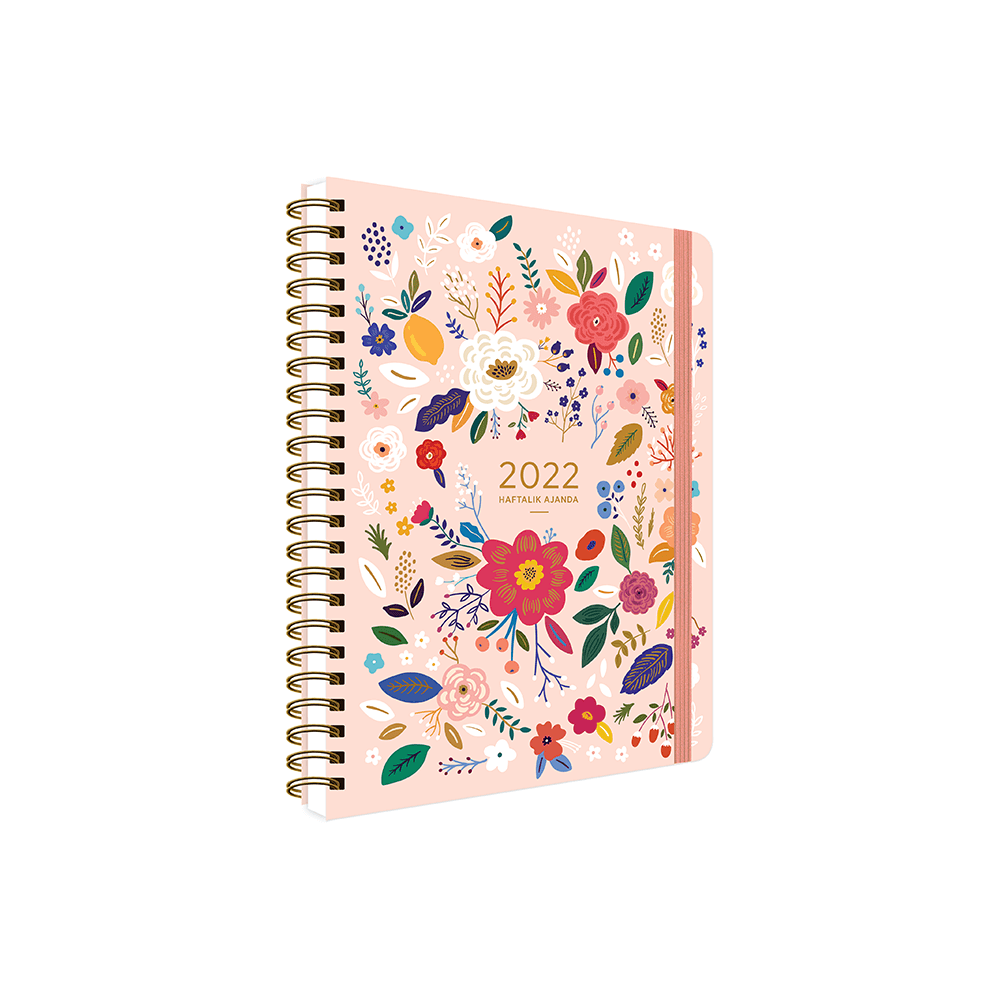 Keskin Color 2022 A5 Spr.Sert Kp.Haftalık Ajanda - Pembe Çiçek 831156-99