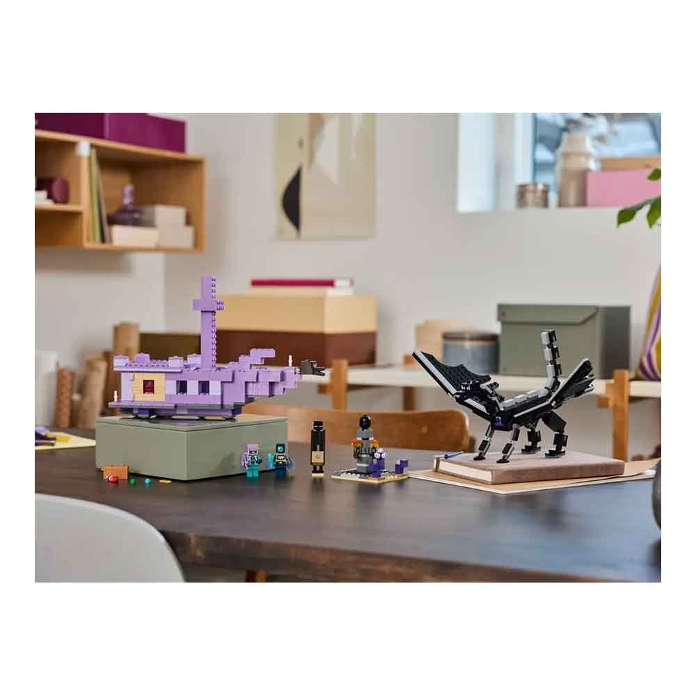 LEGO® Minecraft® video oyunu oyun seti – İnşa edilebilen bir ejderha oyuncağı ve gemisi, ayrıca bir Ender Kaşifi, Ender - Şövalyesi ve Minecraft Enderman içerir