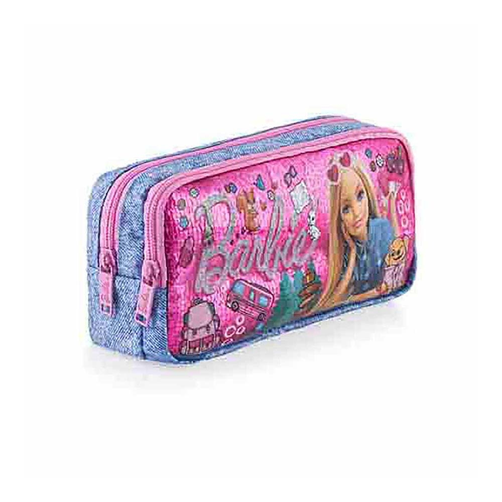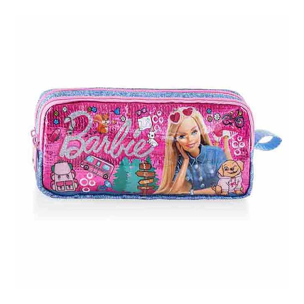 - Bu havalı kalem kutusu ile Barbie’nin macera dolu dünyasına giriş yap! Fermuarlı, çift bölmeli, geniş iç hacimli ve dayanıklı özelliklere sahiptir. Çocuklar kalemlerini Barbie Camping kalem kutusuna koyarak okula gitmeyi artık daha çok sevecekler! Çocukların çok sevdiği Barbie desenli bu kalem kutusunda %100 polyester su itici özellikli baskılı kumaş kullanılmıştır. Özel tasarım, uv baskılı ve frekanslı superclear ön patch, hologramlı folyo ile dikkat çeken kalem kutusu derslere keyif katacak!