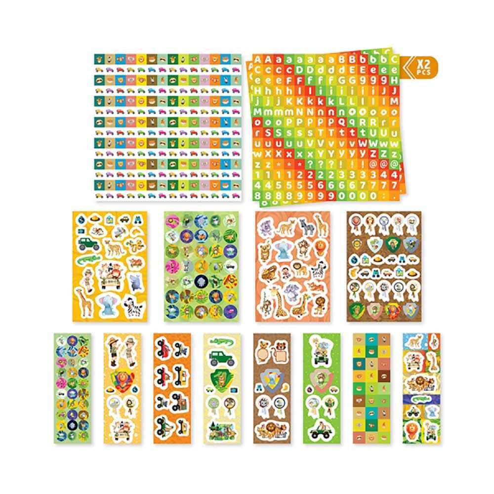 15 tabaka üzerinde orman hayvanları ve safari figürlerinden oluşan 800 den fazla sticker - 1 adet Safari Çizim defteri