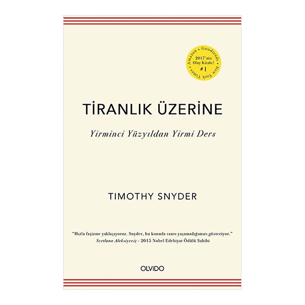 “Çok bilgece ve tam da günümüz için… Mutlaka okunmalı!”-George Saunders-“Hızla faşizme yaklaşıyoruz. Snyder, bu konuda sanrı yaşamadığımızı gösteriyor.”-Svetlana Aleksiyeviç, 2015 Nobel Edebiyat Ödülü Sahibi-Yirminci yüzyılda Avrupa demokrasileri birer birer faşizme, Nazizme ve komünizme yenik düştüler. Bu dönemlerde bir lider ya da bir parti “halkın sesi” olduğunu ve ülkelerini küresel tehditlerden koruduğunu iddia ederek sağduyu yerine mitsel söylemleri ön plana çıkarmışlardı. Avrupa tarihi bize göstermiştir ki, toplumlar parçalanabilir, demokrasiler düşebilir, etik değerler kaybolabilir ve sıradan insanlar kendilerini hiç hayal etmedikleri koşullarda bulabilirler.Bu kitabı, böyle bir gerçekten hareket ederek kaleme alan Yale Üniversitesi Tarih Profesörü Timothy Snyder, son yıllardaki küresel politik gelişmeleri ve dönüşümleri tarihsel perspektiften ele alıyor ve bizleri yirminci yüzyılın başında yapılan hatalara düşmememiz konusunda net bir şekilde uyarıyor. Çünkü “demokrasilerin nasıl kırılgan olup kötü bir niyetle istismar edilebildiğini daha önce görmüştük ve bugün aynı taktikler yine sahneye çıkmaya başladı.”Yayımlanır yayımlanmaz birçok ülkede bestseller olup tartışmalar yaratan Tiranlık Üzerine, sadece tarihî ve politik tespitler yapmakla kalmıyor aynı zamanda demokrasiyi, özgürlüğü, insan haklarını korumak adına neler yapabileceğimizi de anlatıyor.(Tanıtım Bülteninden)