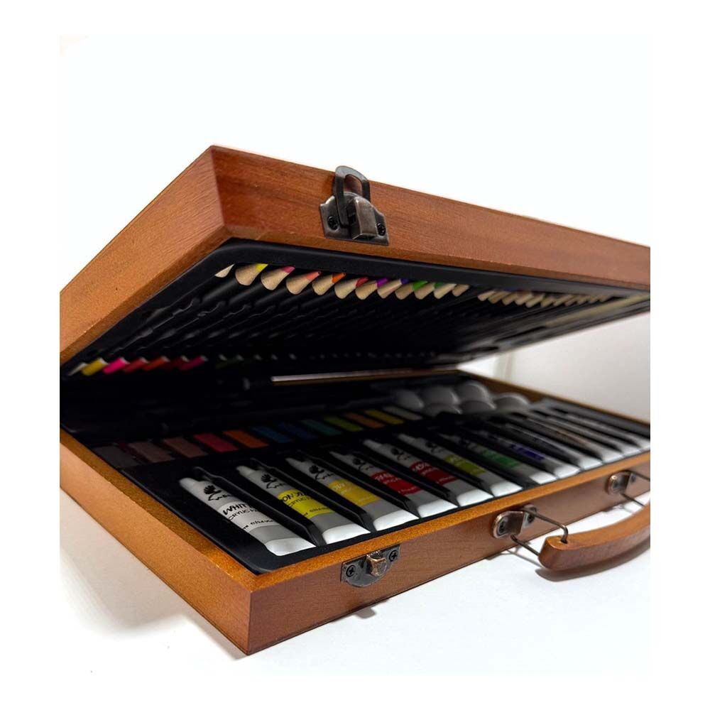 Valetta Bergamo Ahşap Taşıma Çantalı Çizim Ve Boyama Seti 56 Parça VLT1574